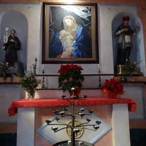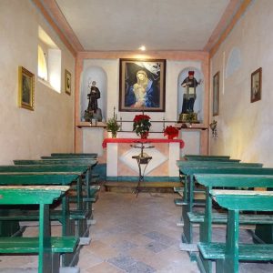I richiami alla Certosa di San Lorenzo a Padula sono molteplici: dagli ornamenti in stucco , simili alla Cappella del Tesoro, alpavimento maiolicato con motivi fitomorfui e arricchito dall’illustrazi one del sacricio di Isacco, al paliotto in scagliola e madreperla, alle acquasantiere che – come il portale – sono state realizzate in pietra di Padula. Lo stile barocco spagnolo è largamente rappresentato anche qui: lo si ravvisa nel maestoso crocisso del Settecento, nella deliziosa e struggente statua dell’Addolorata e nel pregevole pulpito; tutti scolpiti in legno; oltre che negli stucchi nissimi. La cappella comunica con l’edificio che l’affianca: è a pianta rettangolare, con un’unica navata e un organo settecentesco. APPROFONDISCI.