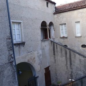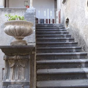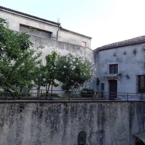 Al palazzo si accedeva tramite un cortile chiuso da muri sui quattro lati con stalla ed un camerone sopra l’abitazione degli stallieri. Oggi, per modifiche apportate negli anni al palazzo da parte dei vari proprietari succedutesi per eventi naturali quali il terremoto del 1857 e le due alluvioni del vicino torrente fabbricato alla fine dell’ottocento di tale descrizione resta il cortile il corpo principale abitativo mentre mancano la scala doppia rampa e il corpo collegato al corpo principale.