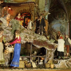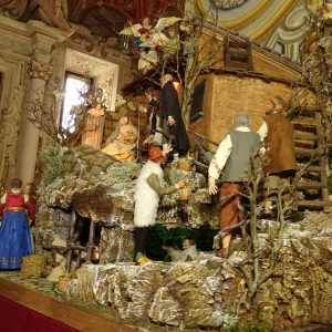 I suoi presepi in stile ‘700 napoletano e in stile arabo si alternano nelle chiese e nei monumenti del territorio, primo fra tutti nella Certosa di Padula, ove resta aperto per i visitatori per tutto il periodo natalizio.