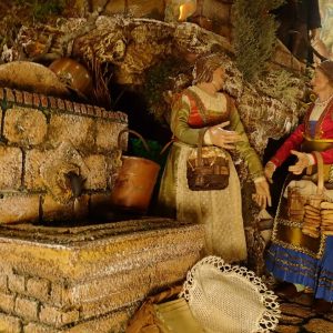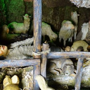 Le statuine dei suoi presepi sono in terracotta e vestite con abiti cuciti su misura in colori, stoffe e accessori dell’epoca.